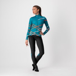 De kwaliteit van Castelli wordt vaak in één adem genoemd met het design. Een snelle blik op de fietsshirts van Castelli maakt al duidelijk hoe bijzonder, gevarieerd en stijlvol de ontwerpen van het Italiaanse merk zijn. Ben je op zoek naar een modern fietsshirt met felle en symmetrische kleurvlakken? Of ben je juist een liefhebber van retro of van lichtere kleuren? Castelli heeft het allemaal, en de makers achter het merk hebben een perfect oog voor vrouwelijke pasvormen en designs. DIt is zeker terug te zien bij de Triangolo Mid Jersey . De magie zit van dit shirt zit in het materiaal: licht geborsteld fleece aan de binnenkant van een polyester/elastaan-mix die zorgt voor een uitstekende afvoering en goede stretch. Daarbij heeft de jersey een aerodynamische pasvorm die niet te strak is. Hij is ideaal voor die dagen waarop een jersey met korte mouwen en armwarmers wel voldoende zou zijn, maar dan gewoon in een meer comfortabele vorm.